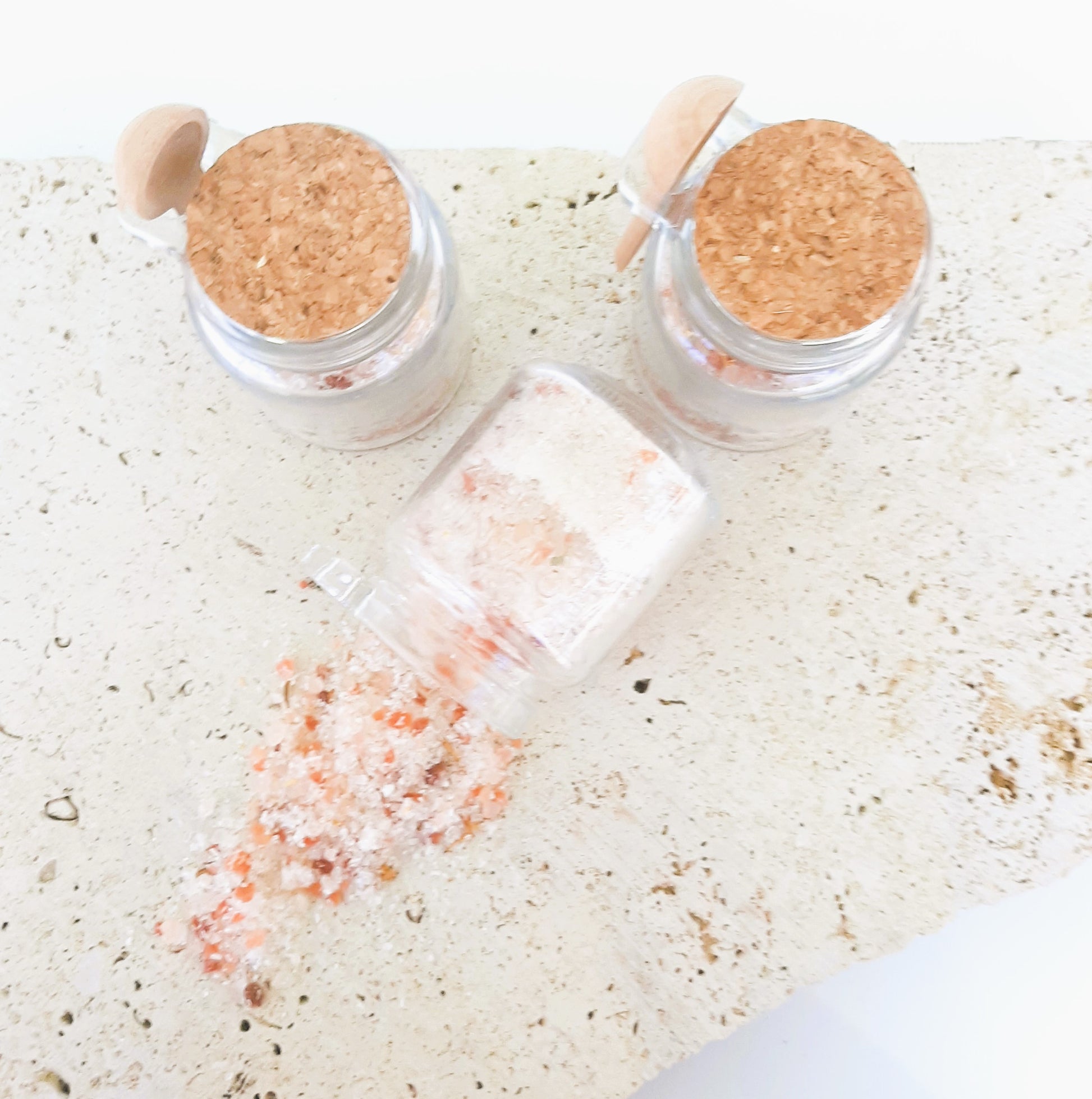 Housed in our gorgeous glass bottle which will complement any bathroom decor. With convenient wood scoop, these bottles can be refilled with our 300g refill bag.