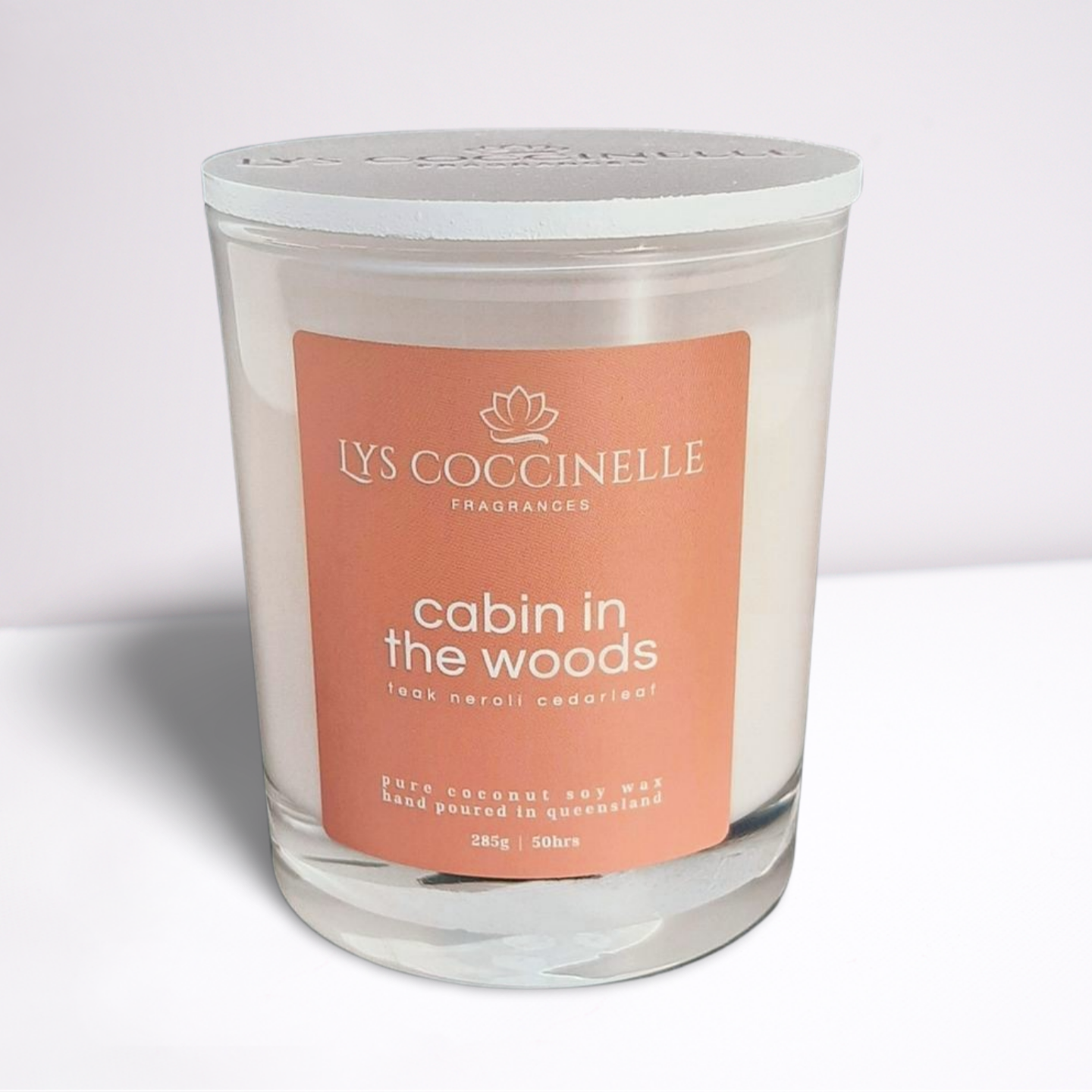 Introducing "Cabin in the Woods," a meticulously crafted candle that captures the essence of a serene forest retreat. This enchanting fragrance opens with the sharp, sweet notes of neroli, evoking the crisp, invigorating air of a woodland morning. As the scent unfolds, fresh, herbaceous rosemary emerges, adding a revitalizing touch that complements the neroli's sweetness. Finally, the warm, grounding aroma of teak wood lingers, wrapping you in a comforting embrace reminiscent of rustic cabins and the tranquility of nature.