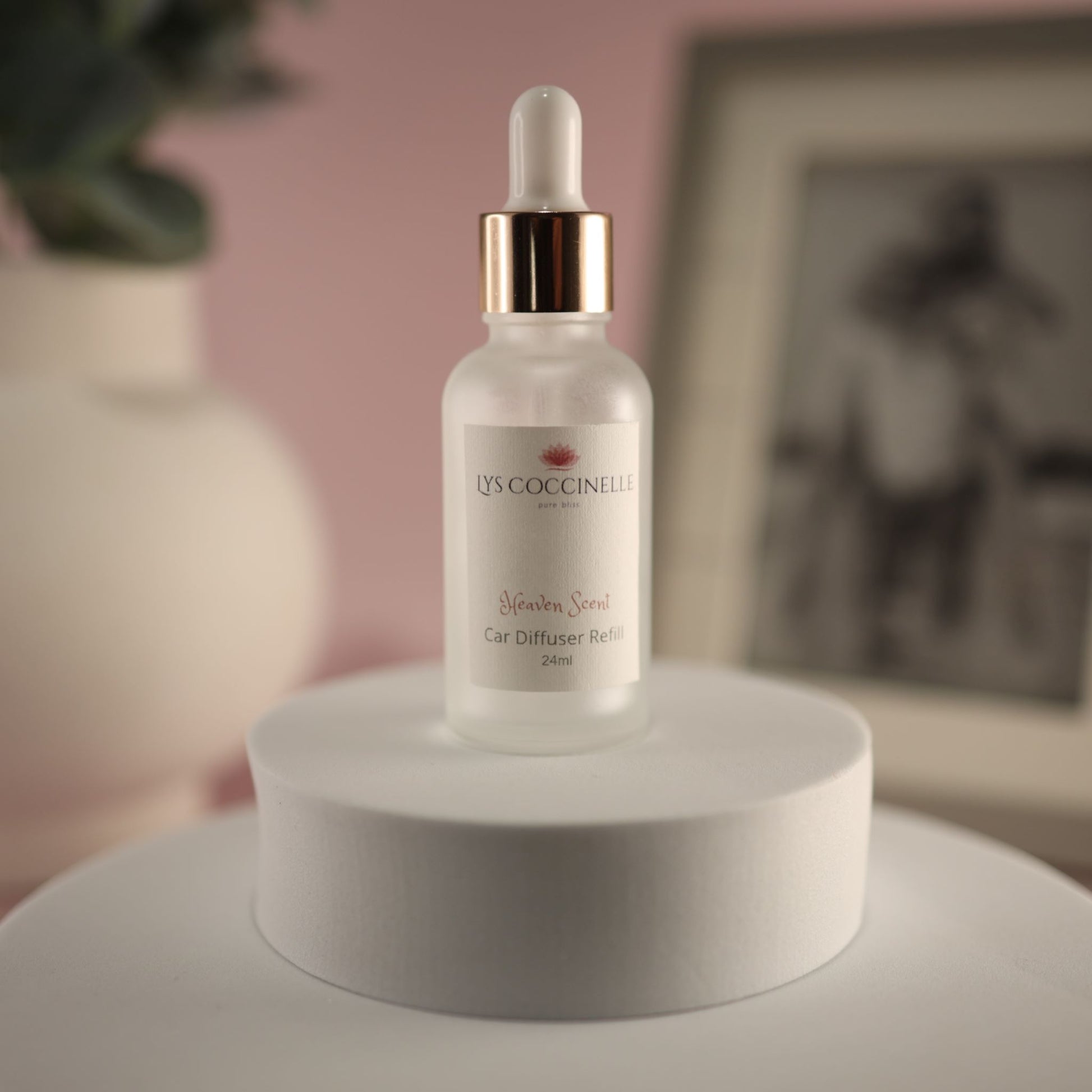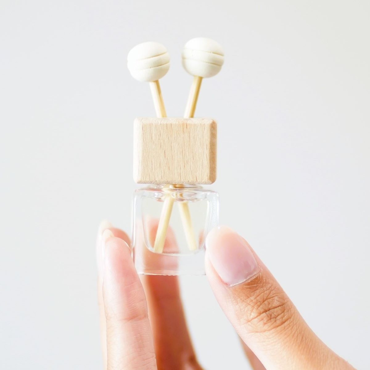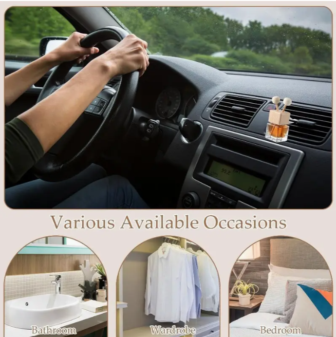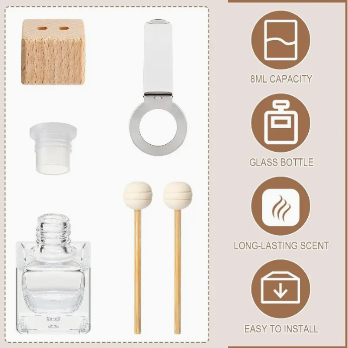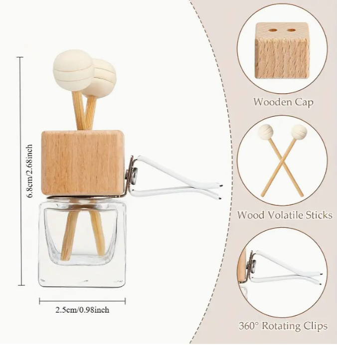 Clip-On Diffuser: To assemble, undo lid, take out plastic bung & discard, place white clip over bottle neck and then screw on wood lid. Place diffuser sticks in holes and clip onto your car's vent or on air-con unit in home.